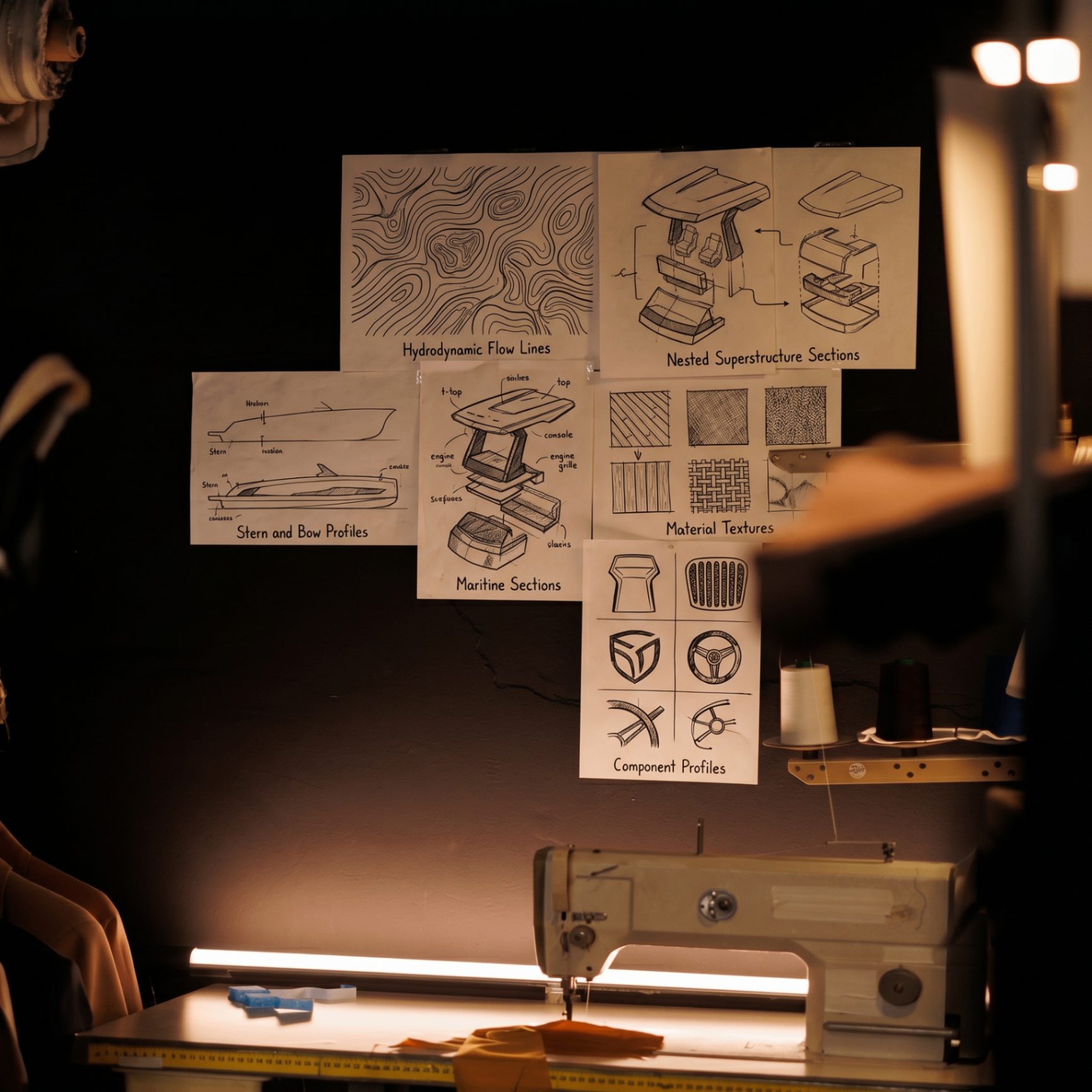 The home of Kumbra craft: noble materials, innovative techniques, prototypes, sketches, campaign films and design guides that shape every yacht.
